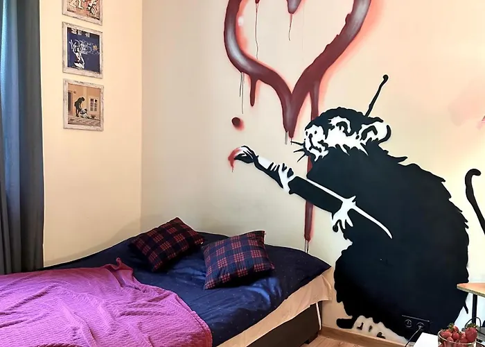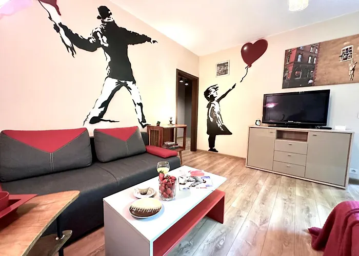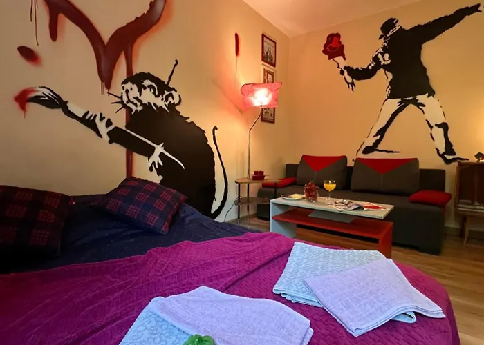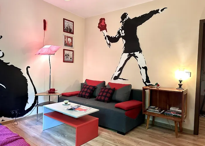 تشتمل الشقة على المطبخ الكامل المزود بالغلاية الكهربائية والمجمدة وأدوات المطبخ، بالإضافة إلى معدات صنع القهوة والشاي. تقع شقة "Banksy" Art بمساحة 38 مترًا مربعًا على بعد دقائق بالسيارة من محطة حافلات Goclaw. يمكن الاستمتاع بمجموعة من الأنشطة، بما في ذلك الرحلات على الأقدام، في المنطقة.